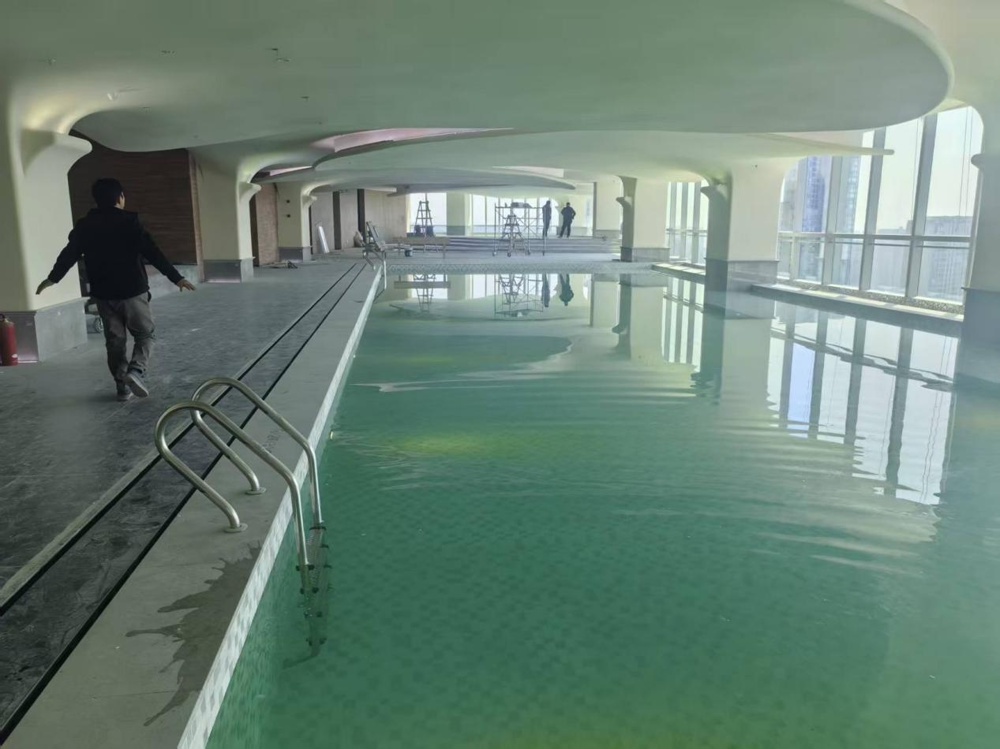 Следуя тому же восточному эстетическому дизайну, зона бассейна оснащена панорамными окнами во всю стену с прямым видом на реку Сянцзян и Оранжевый остров. Ночью гости могут насладиться огнями города и фейерверками над Орандж-Айл, что делает его одним из популярных мест для фотографирования в отеле.